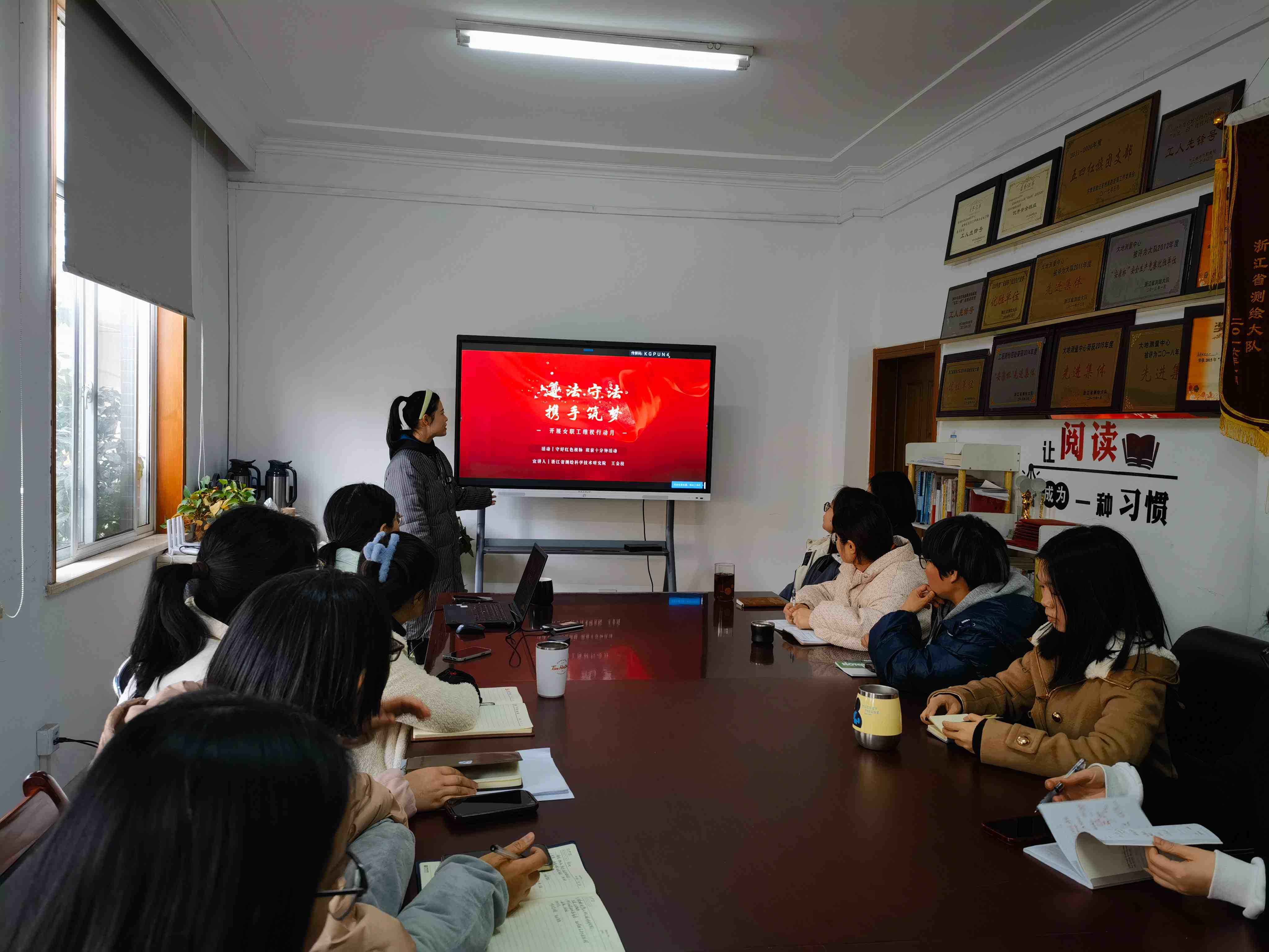 3月7日下午,在“三八”妇女节来临之际,为更好地维护女职工合法权益和特殊利益,测绘工程中心空间测绘所开展了“提升法治观念,学习身边典型,共筑美好未来”—女职工维权行动月的班前十分钟活动。