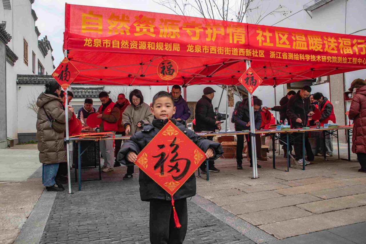 在省测科院测绘工程中心和龙泉市自然资源和规划局相关负责人的带领下,来自测绘工程中心的一线职工以及龙泉市书法家协会会员现场挥毫,为社区居民书写“福”字,在墨香中送上真挚的新春祝福,营造出浓厚祥和的节日氛围。