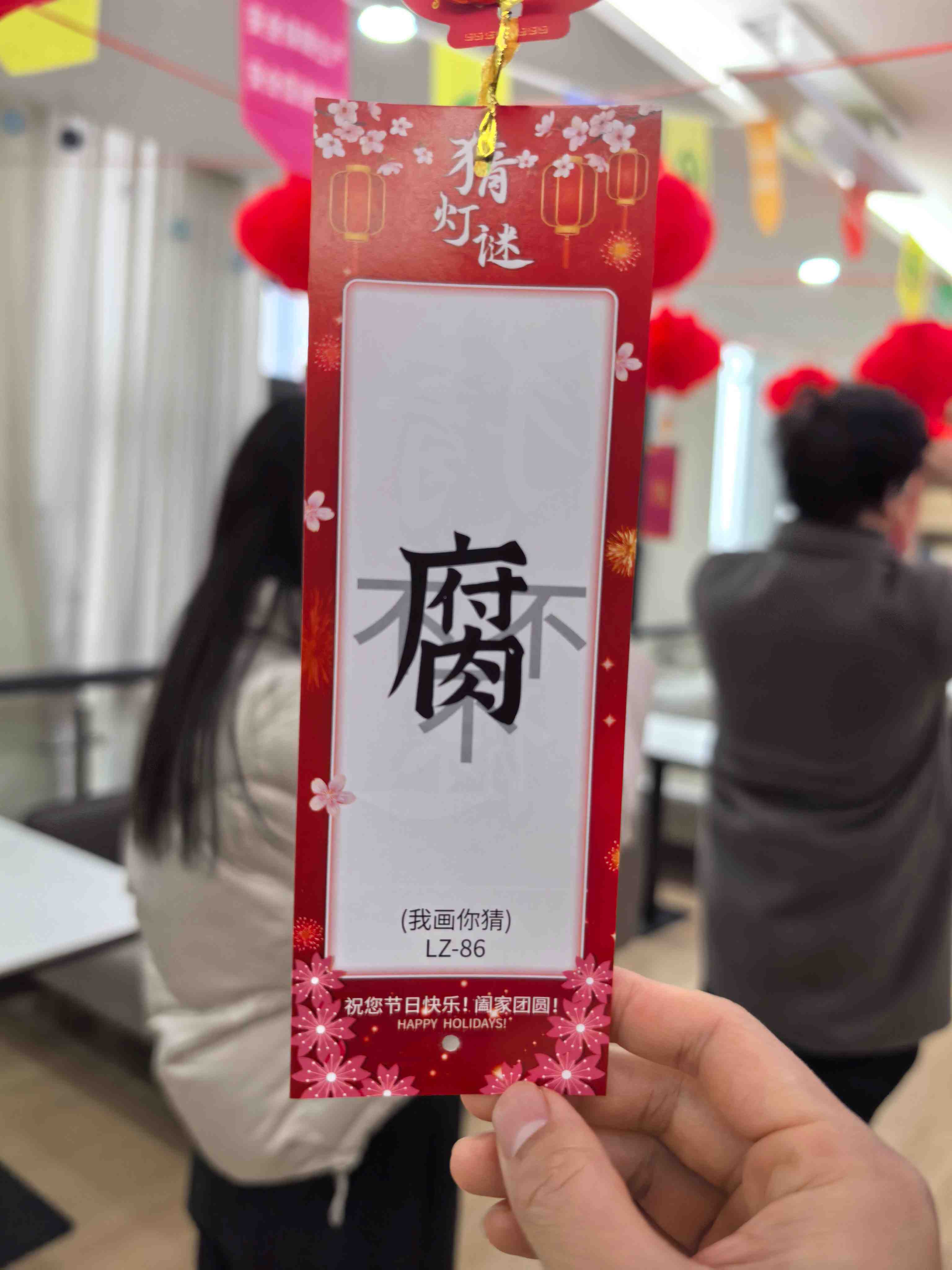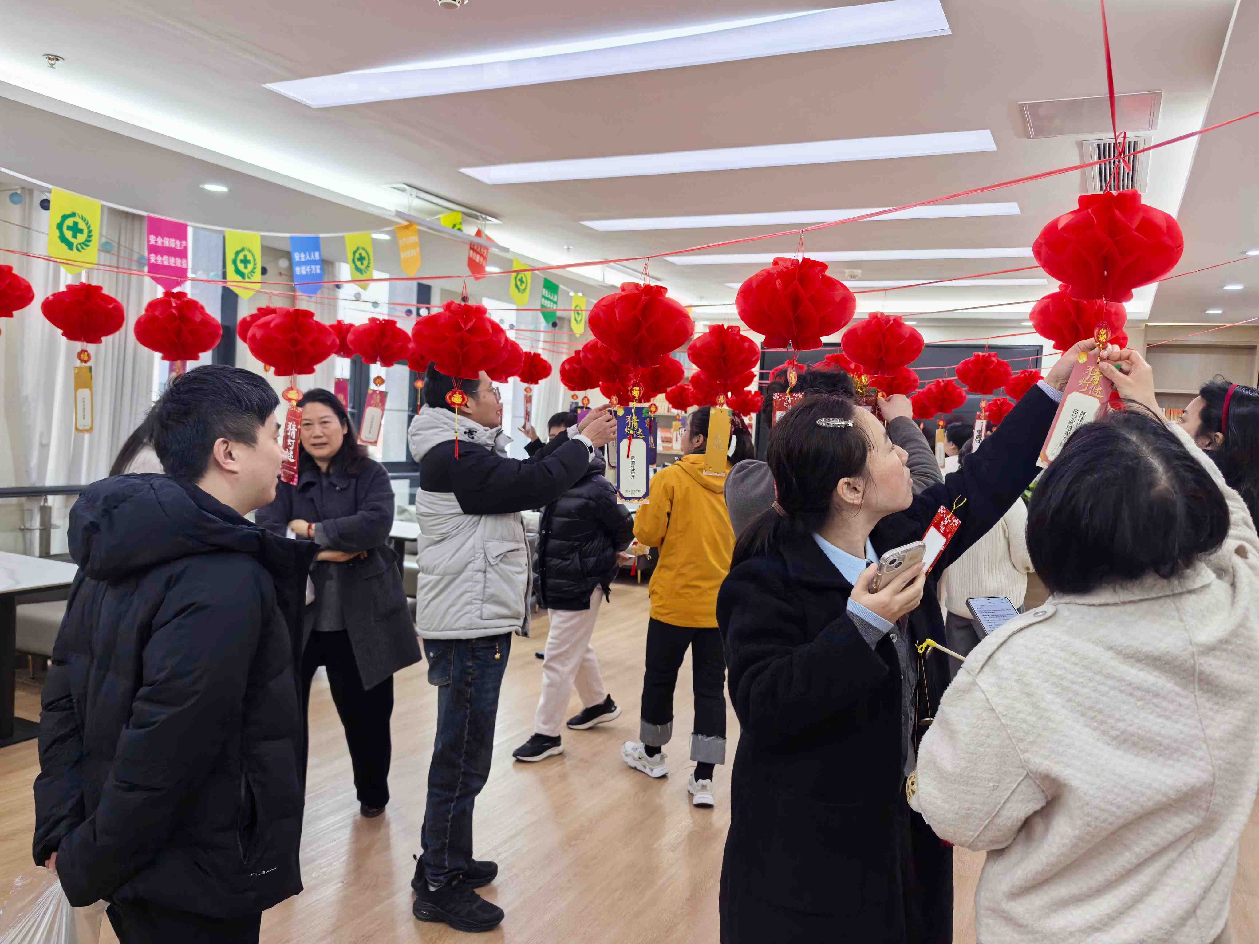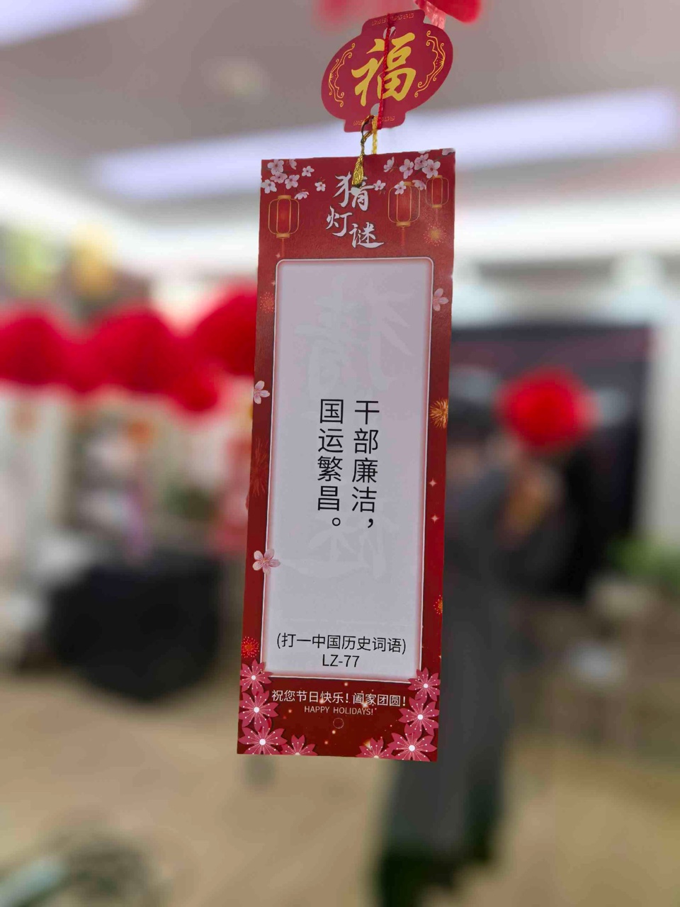 活动现场,一盏盏火红灯笼高高挂起,一张张灯谜纸条错落悬挂。谜题内容形式多样、趣味十足,涵盖字谜、成语、歇后语及日常生活用品等,兼具知识性和娱乐性。该活动巧妙融入廉洁文化元素,将廉政理念寓于生动形象的谜面之中,让职工在猜谜解字的过程中潜移默化接受廉政教育,涵养清廉之风。徜徉在热闹的灯谜小道中,职工们仔细阅读谜面,兴致勃勃地讨论着谜题,取下猜出的灯谜纸条到工作人员处回答兑换奖品。欢快的背景音乐和不时传出的欢笑声,将节日的氛围推向高潮。
