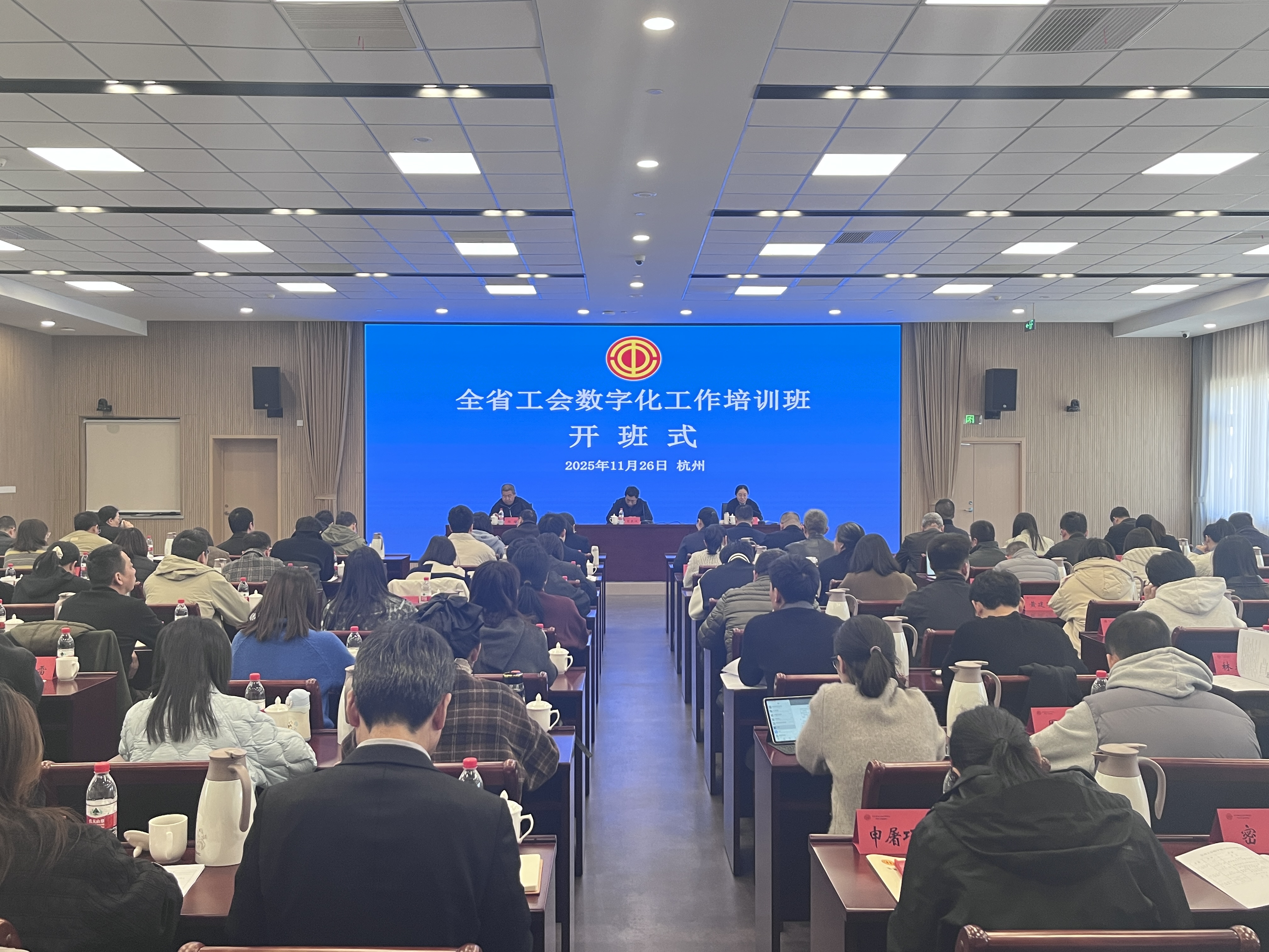 11月26日下午,全省工会数字化工作培训班顺利开班。浙江省总工会干部学校党委书记、校长林辉致辞,浙江省总工会职工技术协作与网络中心主任竺亚汉讲话;浙江省总工会职工技术协作与网络中心副主任杨镇主持。140余名工会干部参加本次培训班。