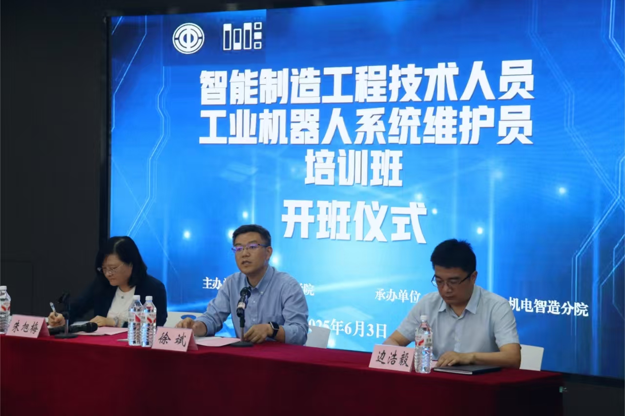 6月3日下午,浙江工匠学院机电智造分院的智能制造工程技术人员培训班和工业机器人系统维护员培训班在浙江机电职业技术大学开班。浙江省总工会干部学校(浙江工匠学院)党委委员、副校长徐斌讲话,浙江机电职业技术大学继续教育学院院长边浩毅致辞。