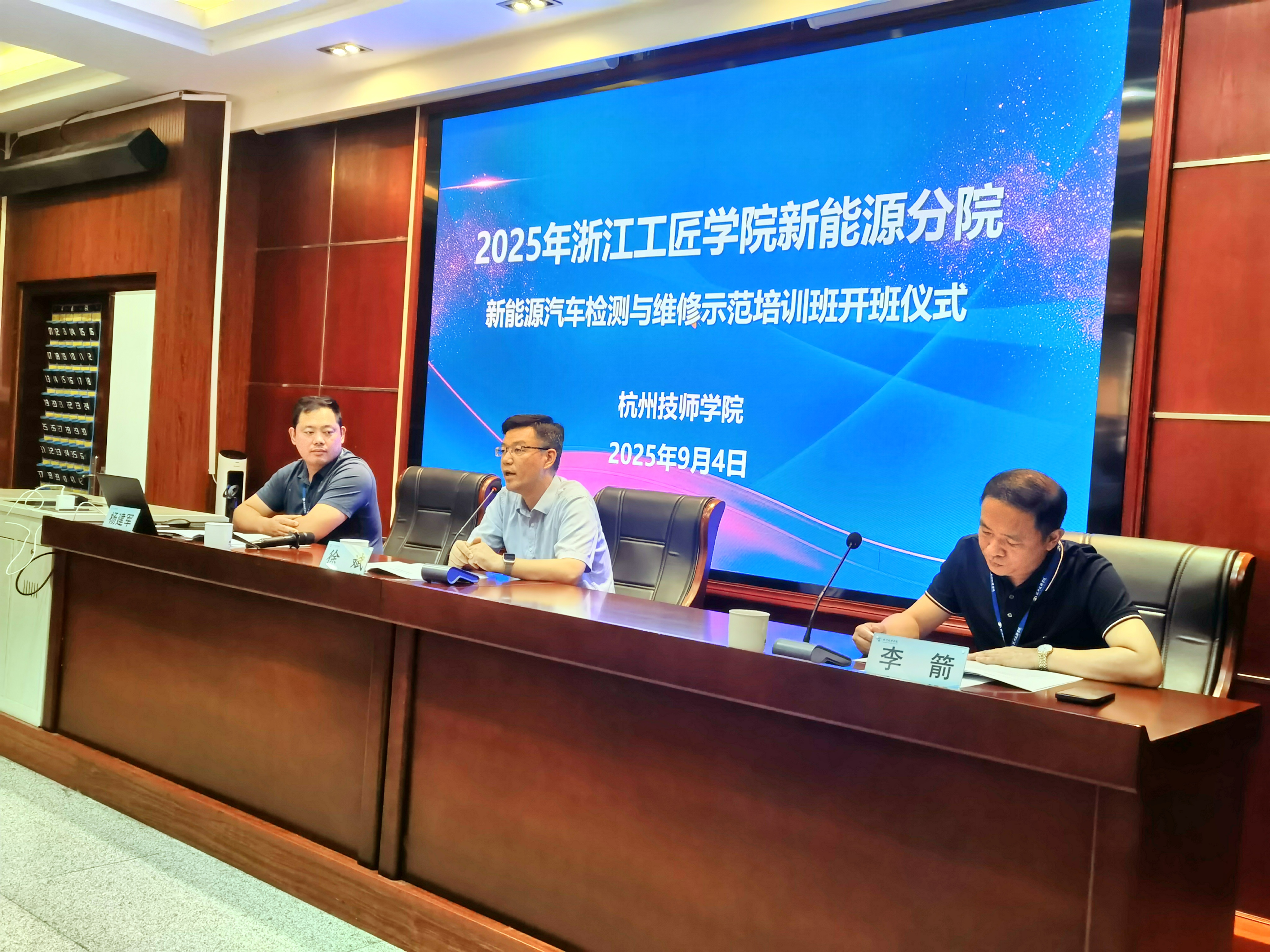 9月4日上午,浙江工匠学院新能源汽车检测与维修示范培训班在桐庐开班。浙江省总工会干部学校(浙江工匠学院)党委委员、副校长徐斌讲话,杭州技师学院校长李箭致辞,开班式由杭州技师学院继续教育学院院长杨建军主持,全省近50名学员参加培训。