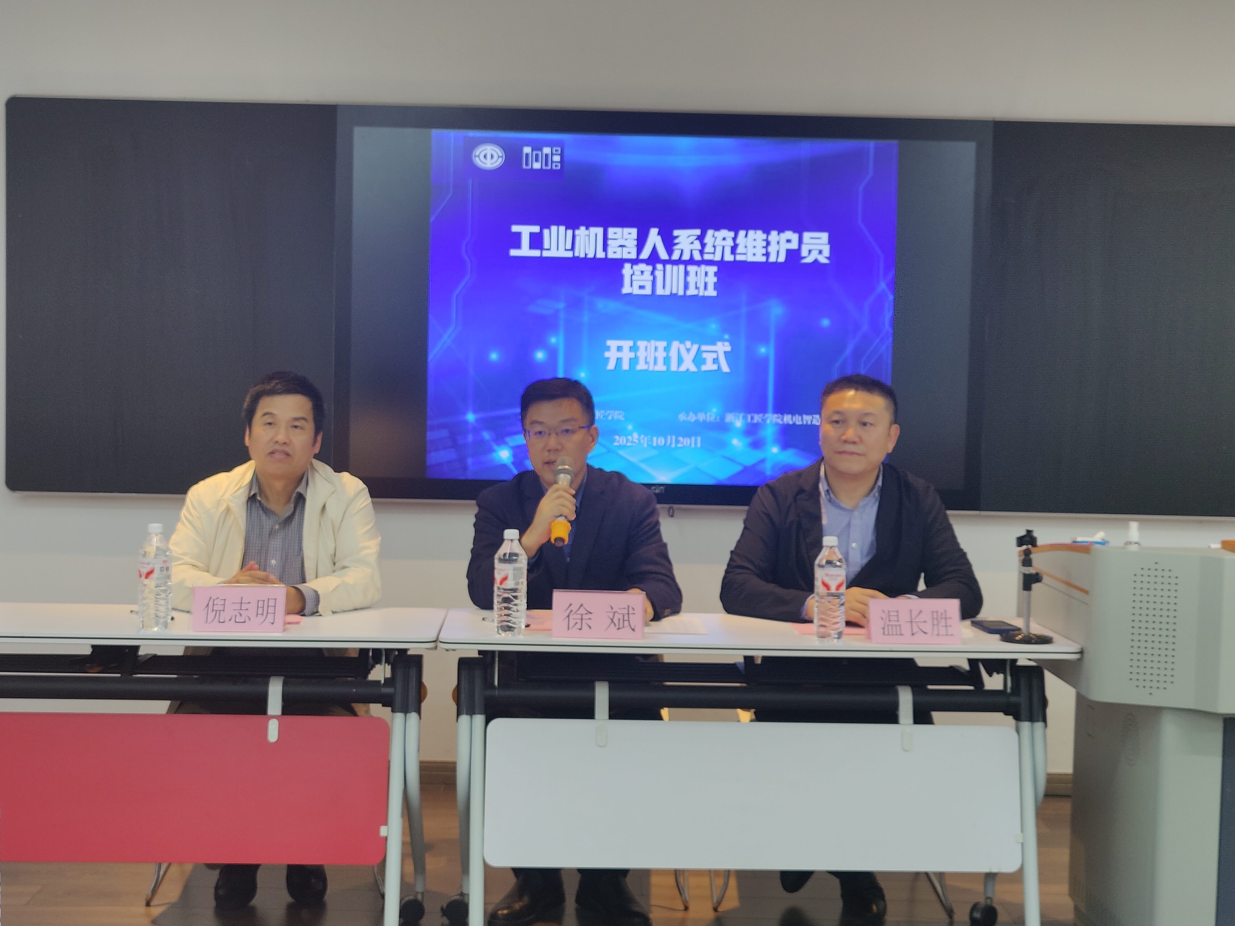 10月20日下午,浙江工匠学院工业机器人系统维护员培训班(第二期)在浙江机电职业技术大学开班,浙江省总工会干部学校(浙江工匠学院)党委委员、副校长徐斌致辞、浙江机电职业技术大学温长胜致欢迎辞。40多名企业职工参加本次培训。