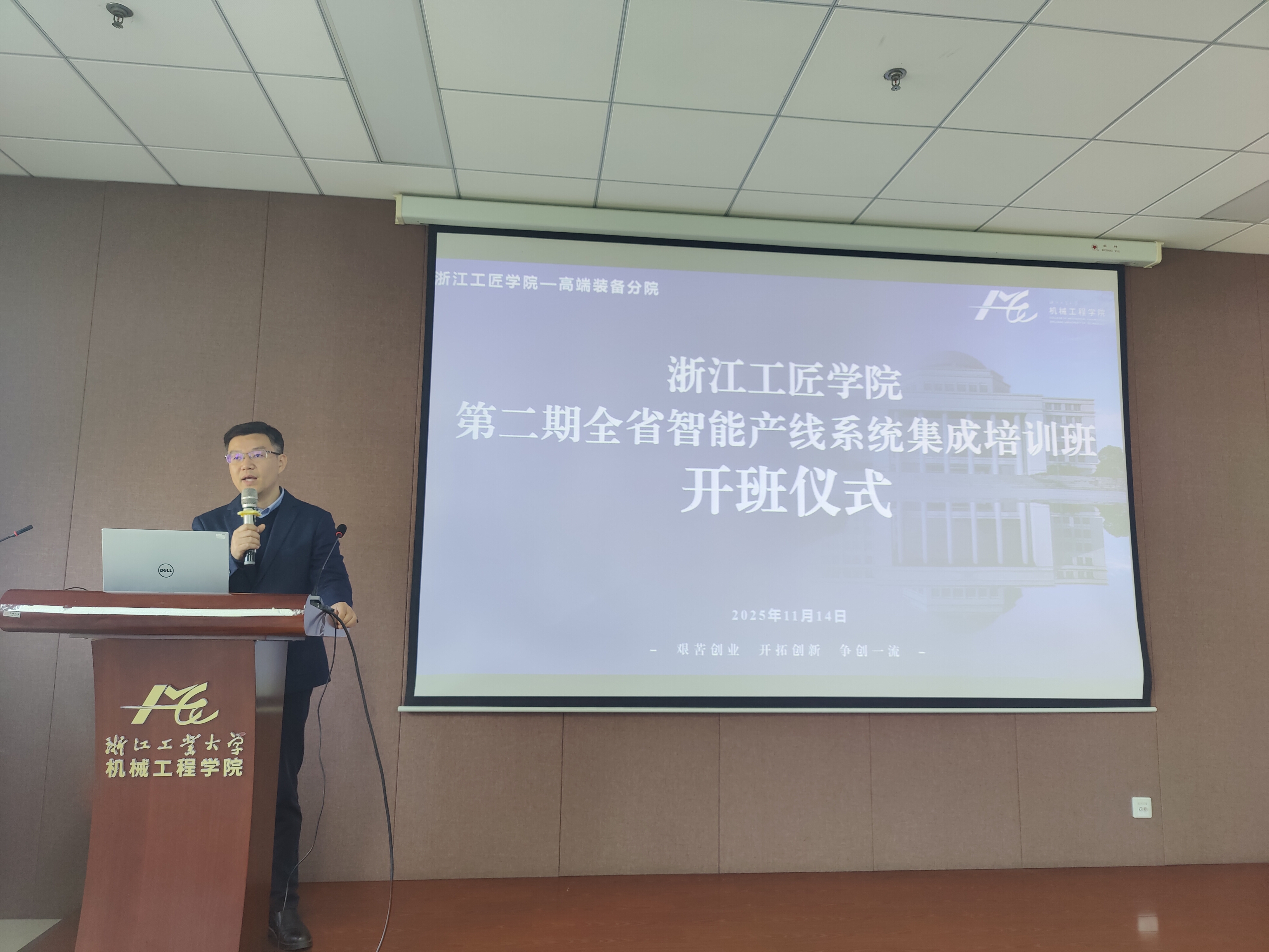 11月14日下午,浙江工匠学院智能产线系统集成培训班顺利开班。浙工大机械工程学院党委书记章嫦华致辞,省总工会干部学校(浙江工匠学院)党委委员、副校长徐斌讲话。70余名企业职工参加本次培训。