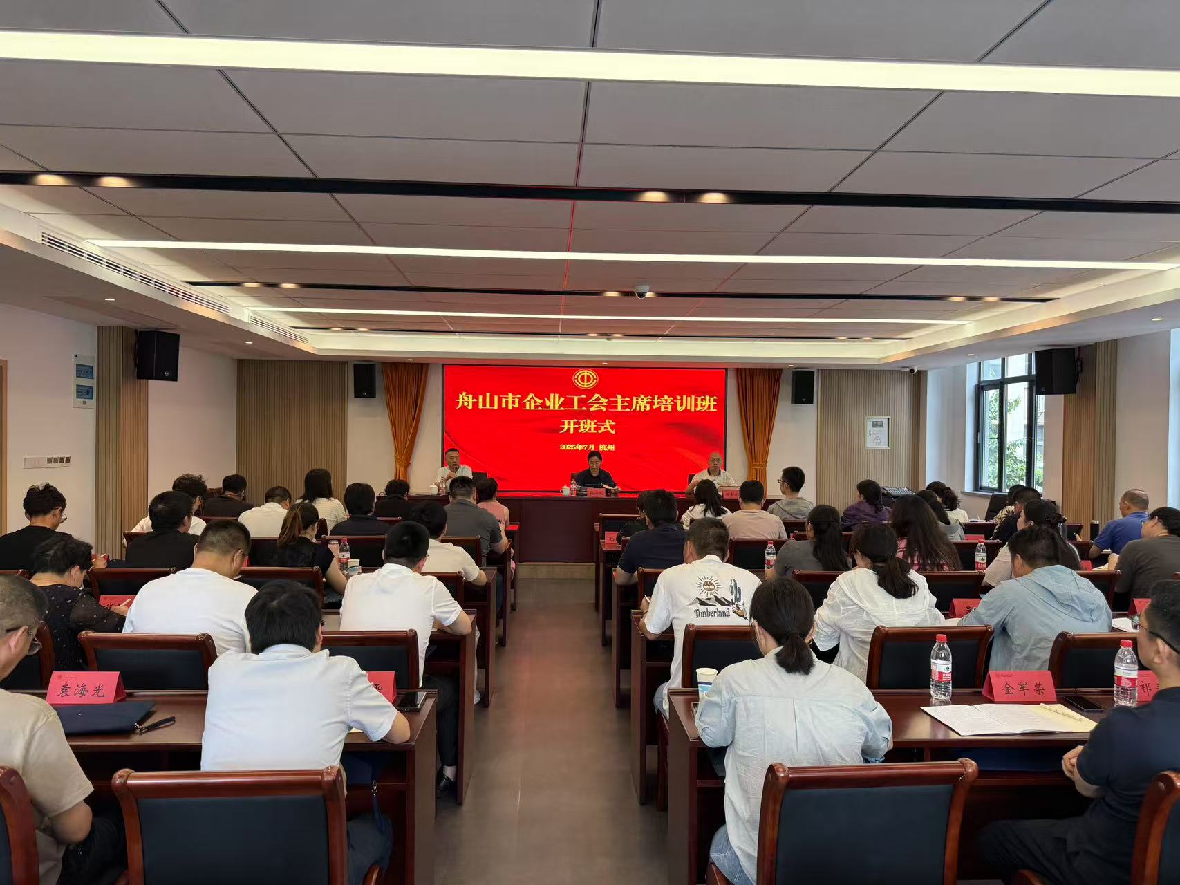 7月16日下午,舟山市企业工会主席培训班顺利开班,舟山市总工会党组成员、经审会主任、女职委蒋海凤讲话,开班式由班主任主持,培训班50余人参加开班式。