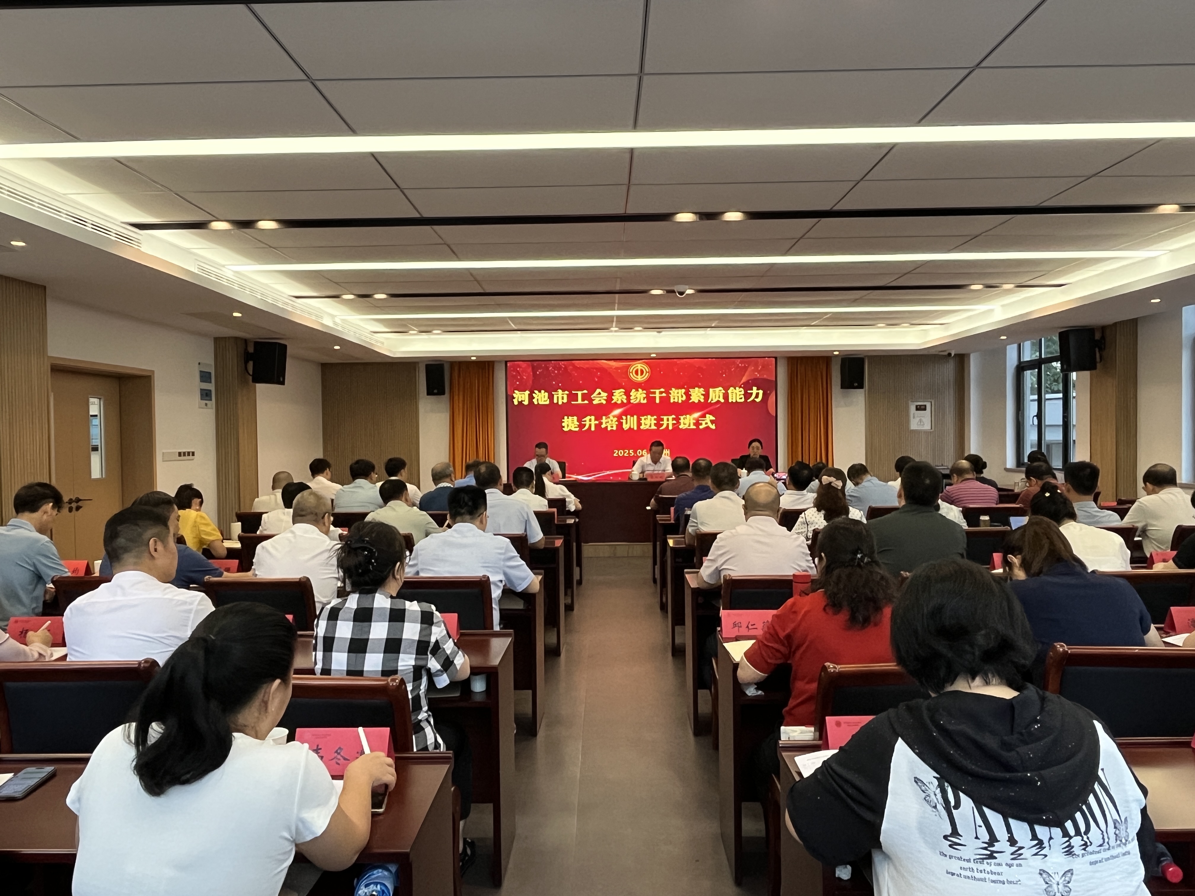 6月23日上午,2025年河池市工会系统干部素质能力提升培训班顺利开班。浙江省总工会干部学校党委书记、校长林辉致辞,河池市人大常委会党组成员、副主任,市总工会主席蒋向明作开班动员,河池市总工会党组书记、常务副主席 韦凡主持开班式。60余名工会干部参加本次培训班。