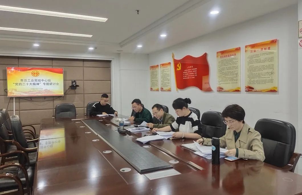 近日,瑞安市总工会召开党组理论学习中心组(扩大)学习会暨党的二十大精神研讨会,全面领会党的二十大精神蕴含的重要思想、重要观点、重大战略、重大举措,厘清下一步工作方向。