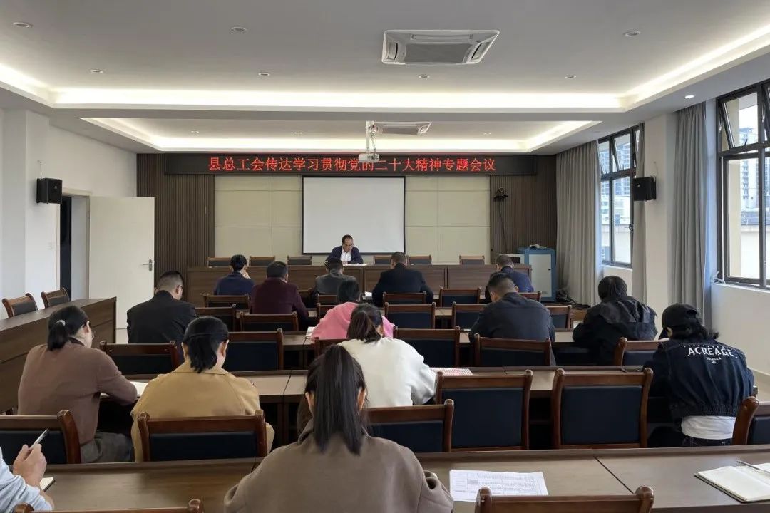 近日,泰顺县总工会召开专题学习会,传达学习宣传贯彻党的二十大精神。会上,县总工会主要负责人介绍了党的二十大情况及报告全文章节脉络,要求县总工会全体干部职工要进一步通读研读学好报告原文,并对学习宣传贯彻落实党的二十大精神作相关发言。