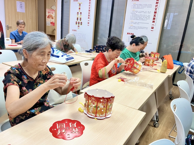 活动中,社区垃圾分类专员程秀屏鼓励居民利用月饼盒、废旧纸张等材料制作灯笼、装饰品等手工艺品,既减少垃圾产生,又增添节日的趣味性和教育意义。叔叔阿姨们在工作人员的陪伴下,亲手制作,没过多久一个个漂亮的灯笼、一件件装饰品就制作完成。