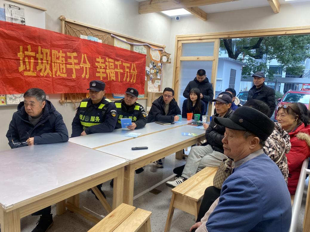 活动现场,社区工作人员、“绿居服务”专职队员与居民代表围坐一堂,通过集中宣讲、互动问答、资料发放等形式,详细讲解了垃圾分类的重要意义、四色垃圾桶投放标准以及常见易混淆垃圾的分类方法。专职队员还结合日常巡查案例,重点拆解了元宵家宴后剩饭剩菜、海鲜壳、包装纸盒等垃圾的分类要点,让居民听得懂、学得会、用得上。