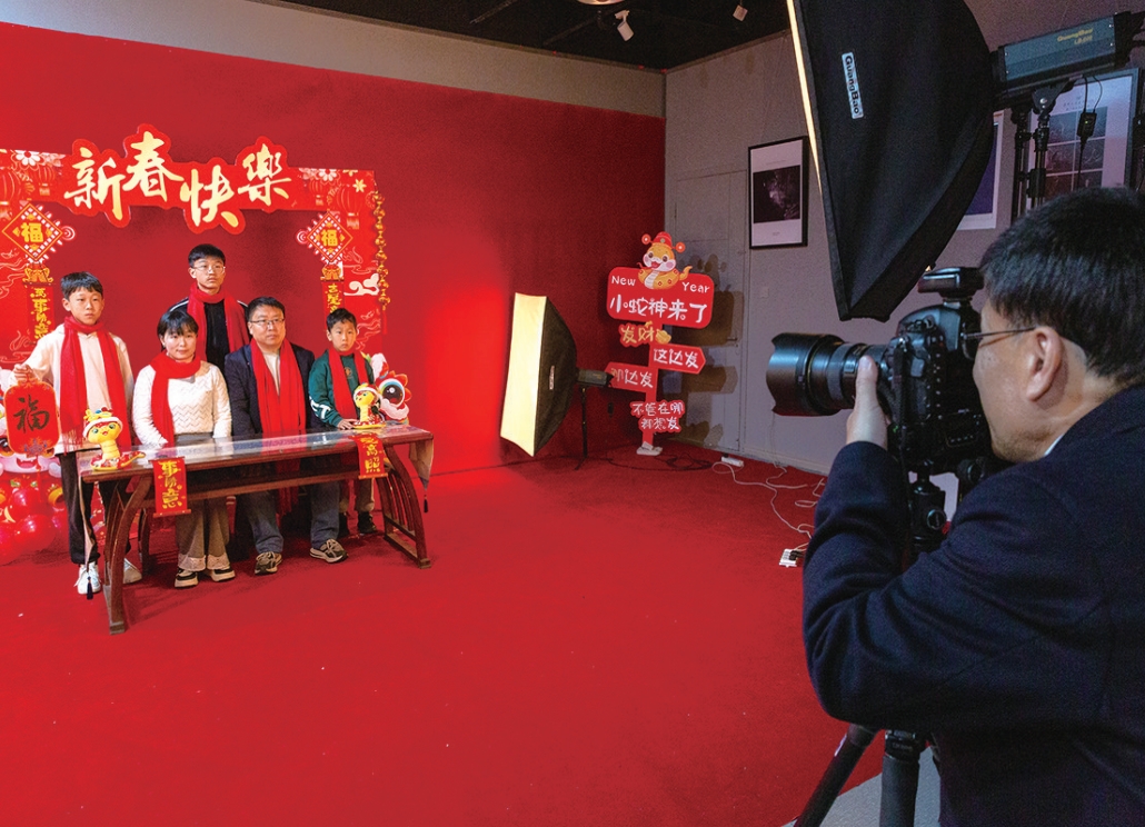 工会摄影志愿者为大家拍全家福。 通讯员赵晓 摄
