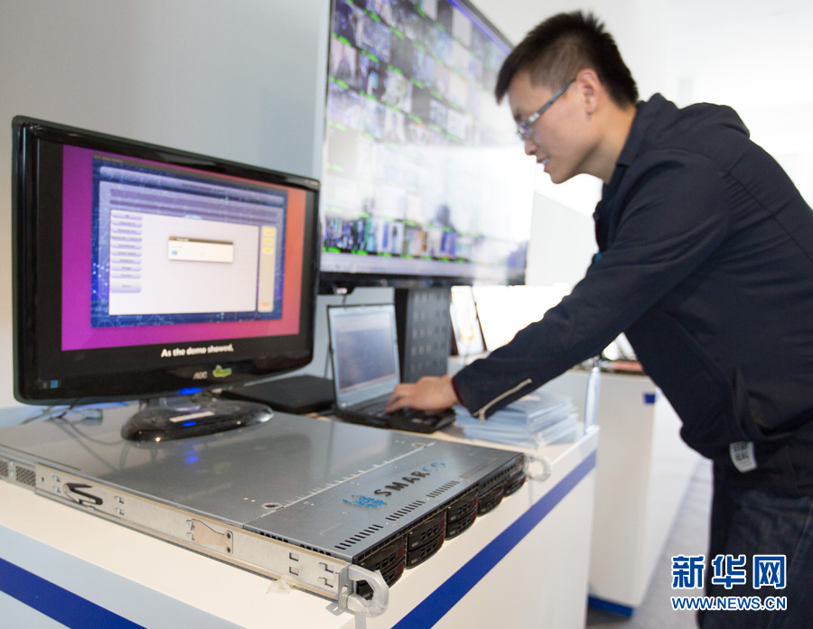 在北京智能计算产业研究院举行的发布会上,工作人员在现场演示高通量人工智能一体机的实际应用(2017年12月6日摄)。新华社记者 金立旺 摄