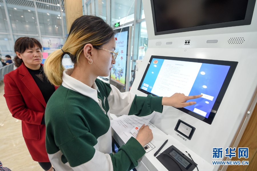 在南京市栖霞区商事登记服务大厅,市民用自动终端机办理业务(3月29日摄)。新华社记者 李博 摄