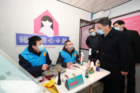 昨日,吕志良(右前)赴杭州调研工会工作,在临平小哥驿站,详细了解驿站运行情况。