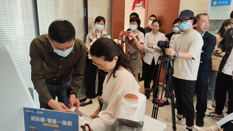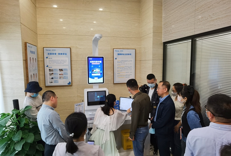 目前启动建设的健康驿站主要以无人值守模式为主,员工通过驿站里的智能自助检测设备,可以检测身体血压、血糖、心电、体脂等十余项健康指标,并通过第三方健康管理平台实现自我健康检测、远程体检与心理咨询、慢病管理、在线处方、药品配送等多种功能,同时员工还可通过微信小程序拓展到为员工家属提供延伸健康管理服务。