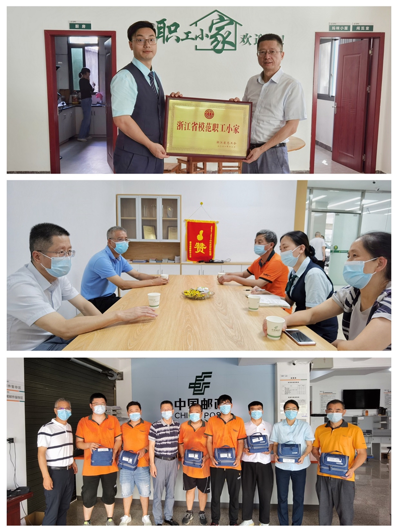 在大源支局,吴斌副主席详细了解了网点经营、员工生活、职工小家建设、“降压增效”活动举办等情况,倾听员工需求心声,并走入职工宿舍,了解设施配备等情况。强调要尽可能给员工创造良好的住宿环境,解决员工后顾之忧,为员工打造环境温馨、氛围舒心、作用凝心的职工小家。同时,向大源邮政所授予由浙江省总工会颁发的“浙江省模范职工小家”奖牌。
