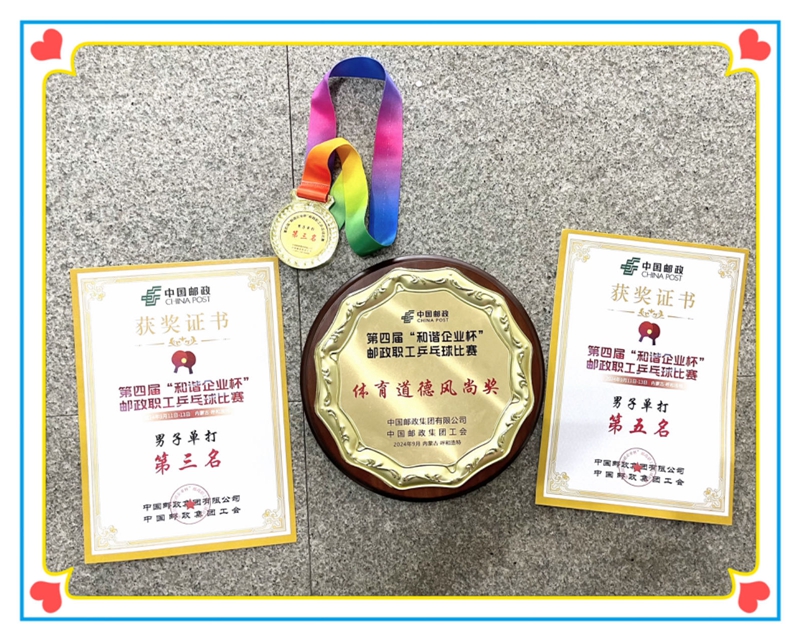 由中国邮政集团有限公司、中国邮政集团工会举办的第四届“和谐企业杯”邮政职工乒乓球比赛于9月10-14日在内蒙古呼和浩特举行,来自全国邮政系统的36支队伍、309名队员参加了为期三天255场精彩激烈的比赛。本次比赛分混合团体和男子单打、女子单打等项目。