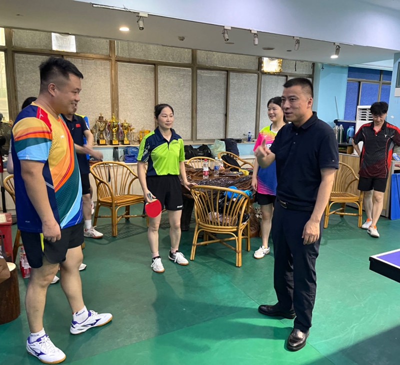 (省邮政工会副主席尤庆华在集训期间看望队员)
