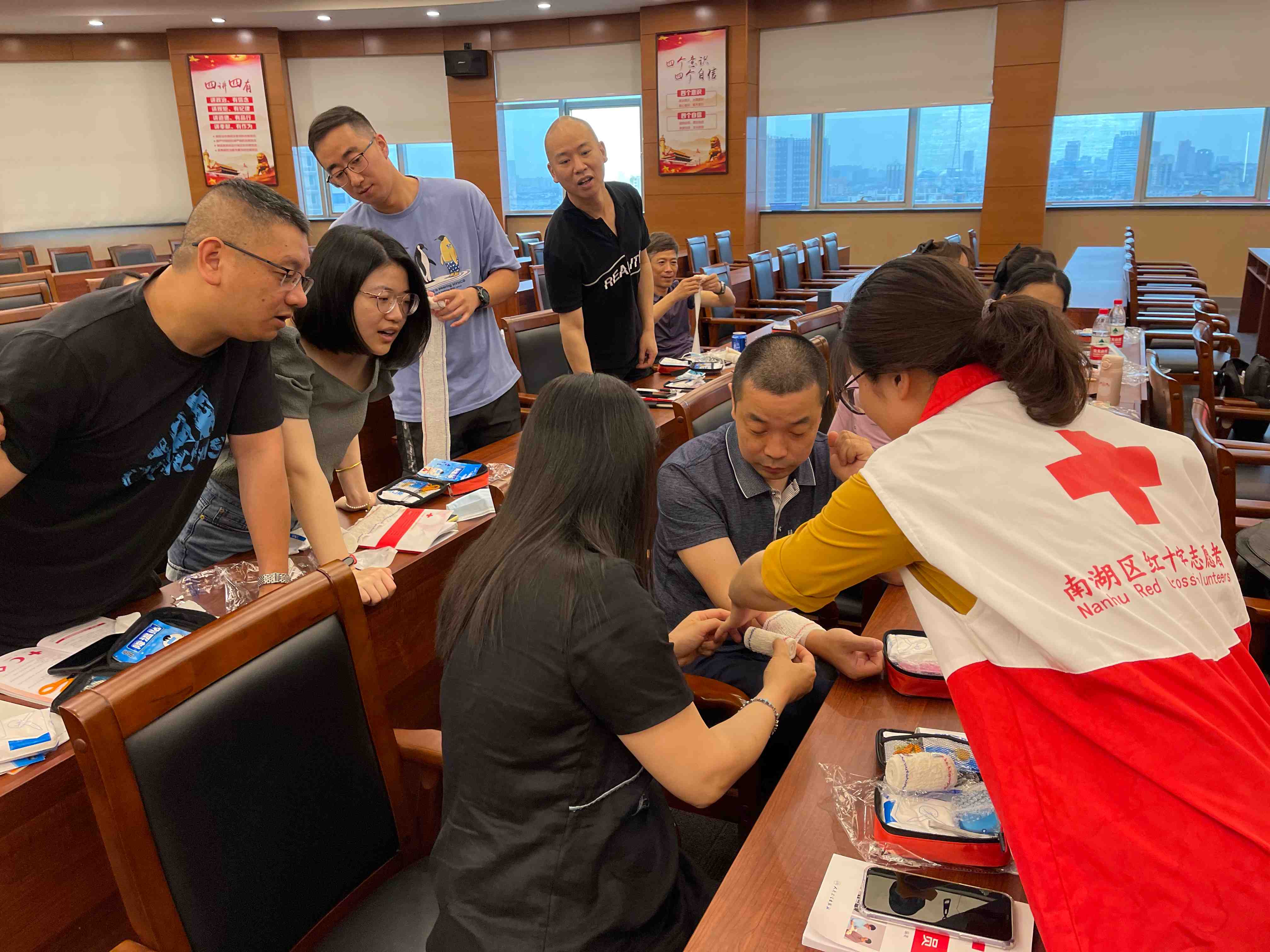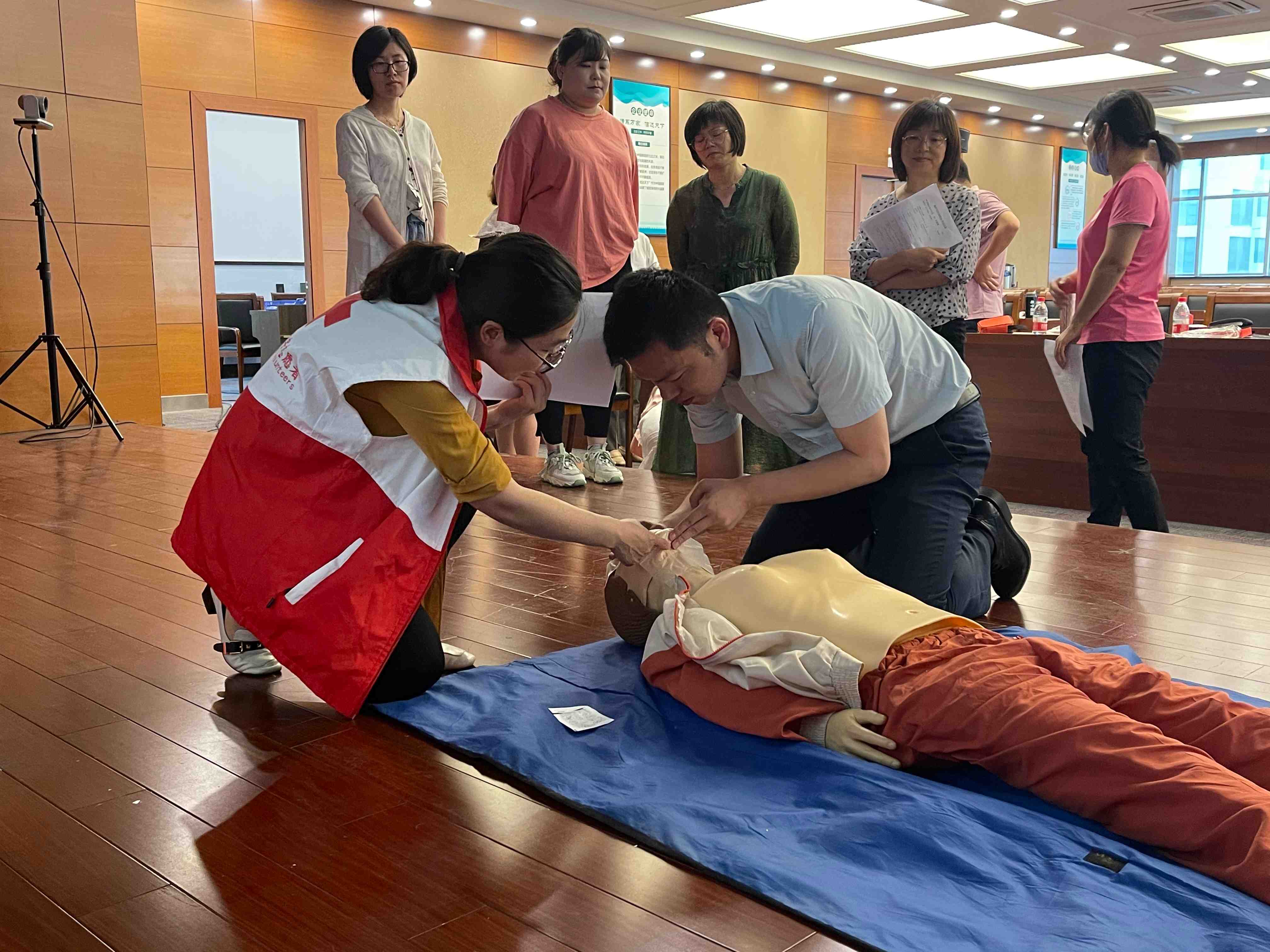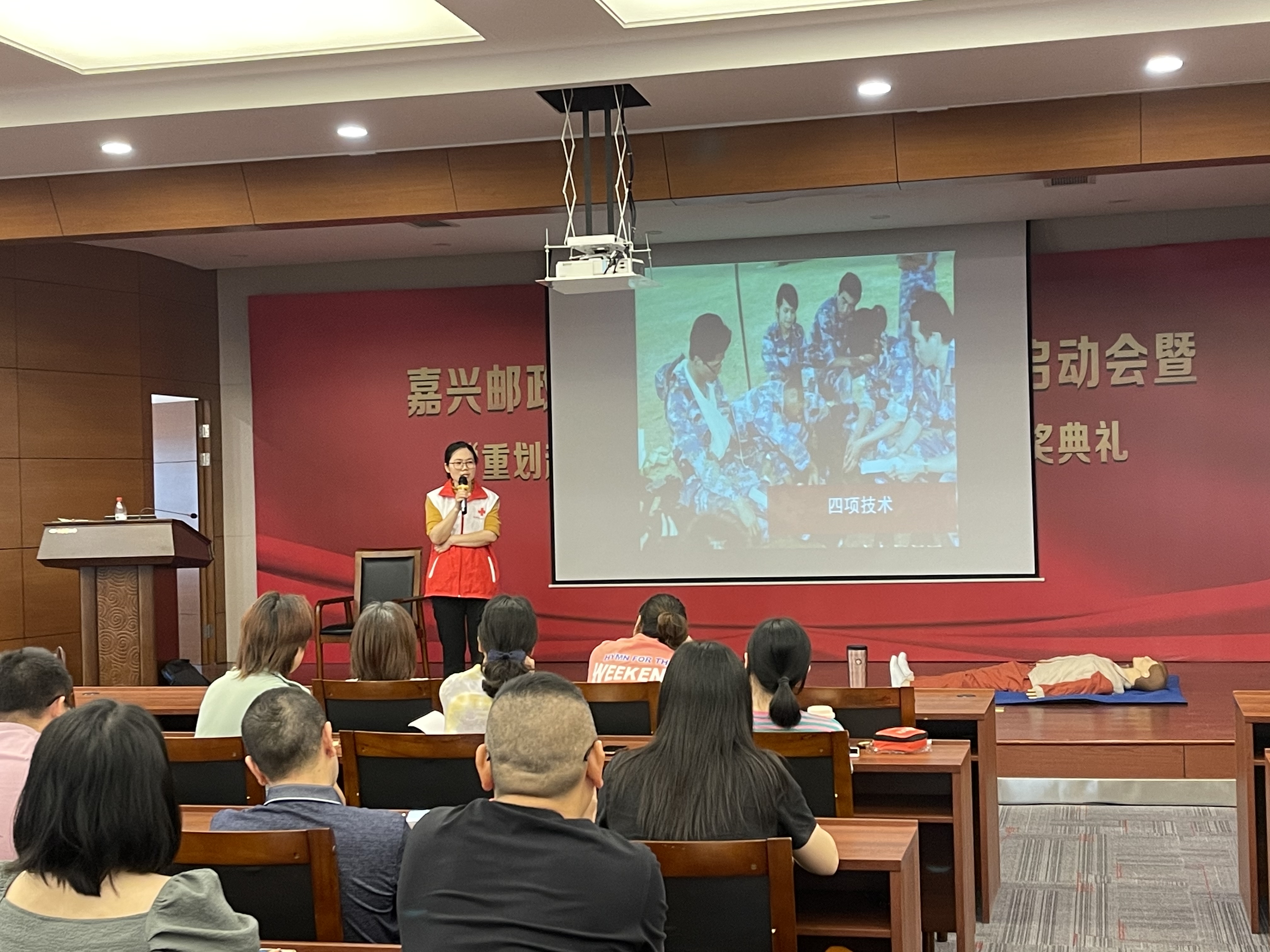 为提升广大职工的健康意识和自救互救能力,5月27-28日嘉兴邮政工会举办了一场红十字应急救护培训。5月28日现场培训邀请了红十字会相关人员现场进行授课。