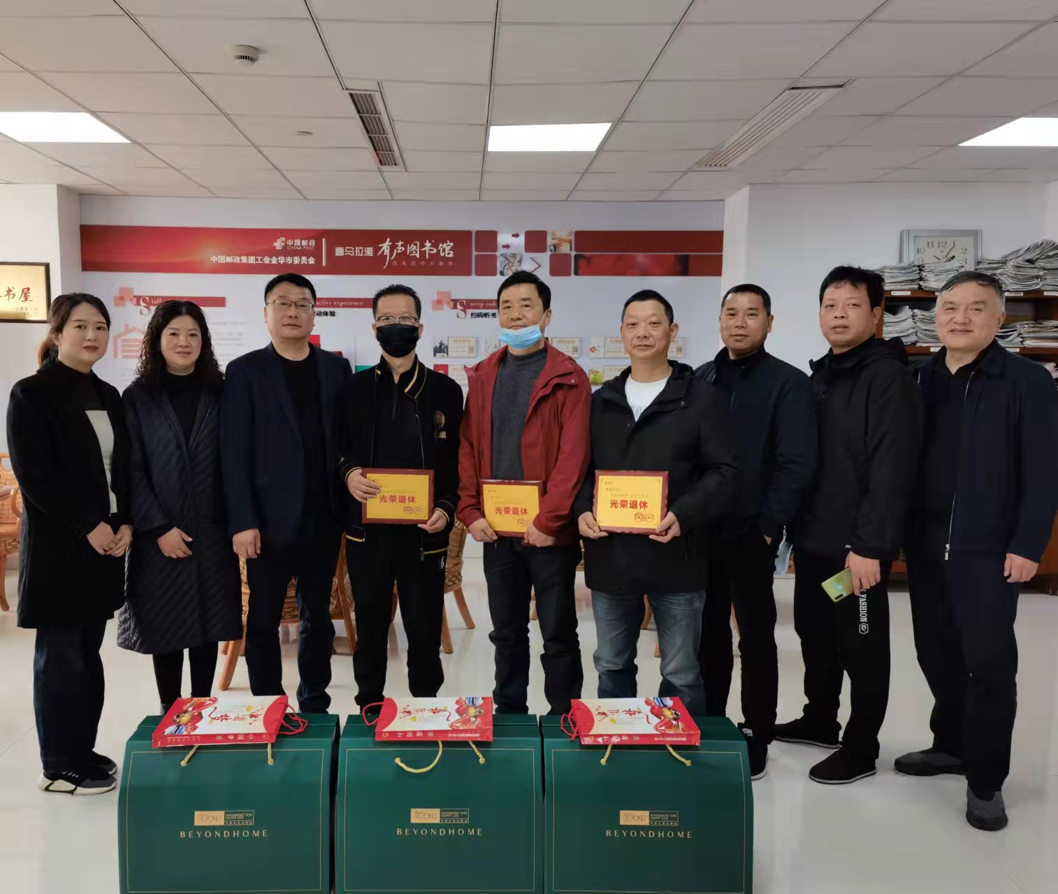 成主席代表公司领导班子,代表行政和工会,向三位即将退休的员工,一直以来在工作岗位上兢兢业业、勤恳扎实的工作表现给予肯定和感谢,同时,也勉励他们:一要老有所乐,调整好心态,积极开始新的生活,要乐观向上,保持良好的生活习惯,适当锻炼身体,培养兴趣爱好,健康快乐的生活。二是要常常回“娘家”看看,看看老领导老同事,一如既往的关心企业发展,为金华邮政发展发挥余热。