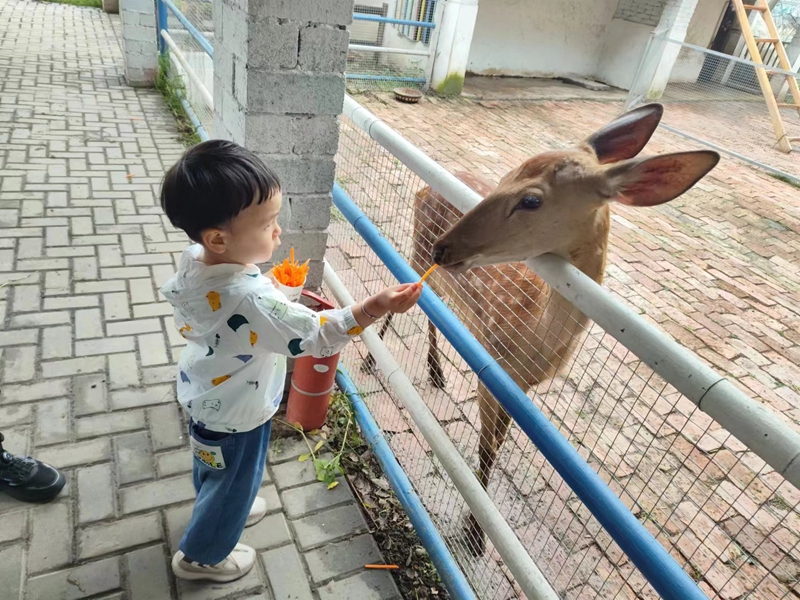 活动伊始,孩子们在萌宠乐园里享受着和小动物们的亲密接触,孩子们拿着准备好的胡萝卜条,一根根地喂着小兔子、小香猪、小绵羊、梅花鹿,享受着与小动物的开心时刻。