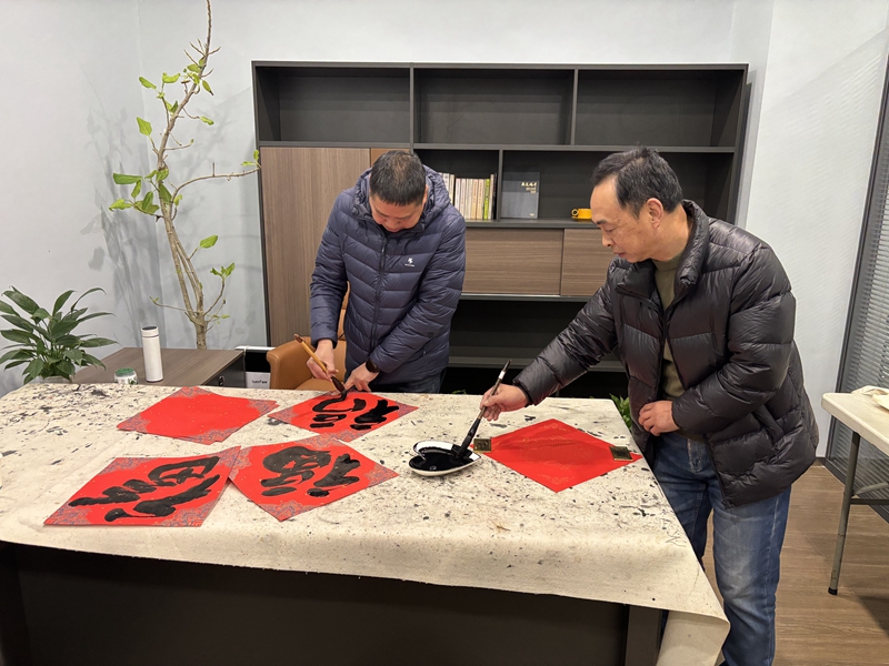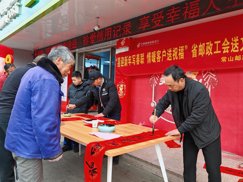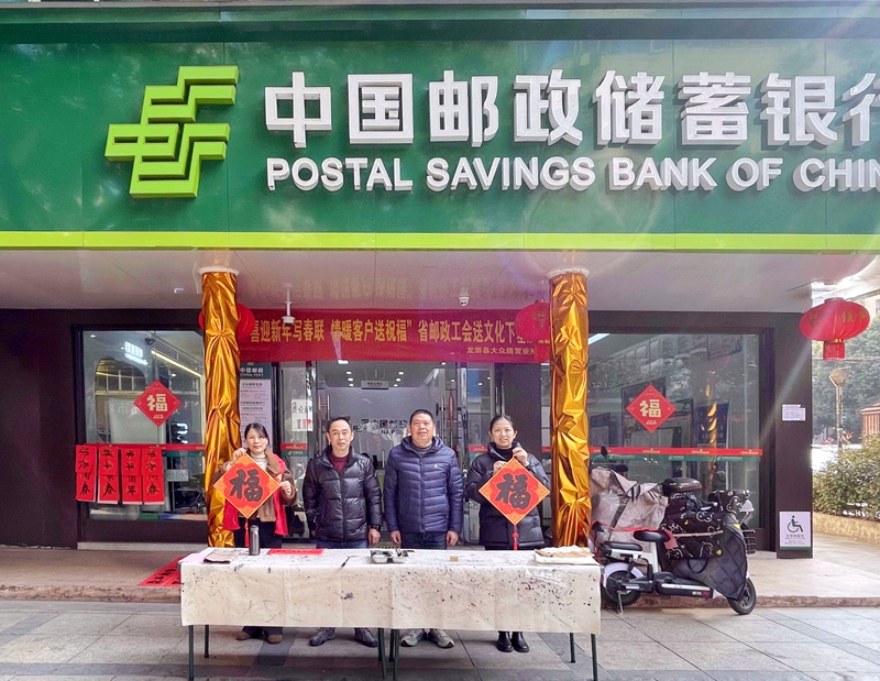 活动现场,墨香四溢,氛围热烈。几位书法老师挥毫泼墨,为客户送上寓意吉祥的春联和福字,一幅幅精美的书画作品在老师笔下应运而生。这些作品不仅展现了三位老师深厚的艺术功底,更表达了老师们对邮政事业的热爱和祝福,更是让基层员工和广大客户深切感受到了来自省、市邮政工会的温暖与关怀。