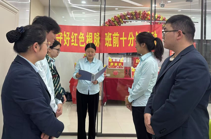 4月23日,景宁县城南营业所开展4月“守好红色根脉·班前十分钟”宣讲活动,本期宣讲人为理财经理刘小花。