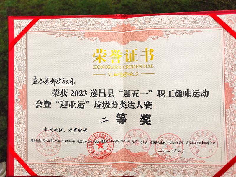 垃圾分类新时尚 文明创建我先行——遂昌县邮政分公司喜获2023遂昌县“迎五一”职工趣味运动会暨“迎亚运”垃圾分类达人赛二等奖
