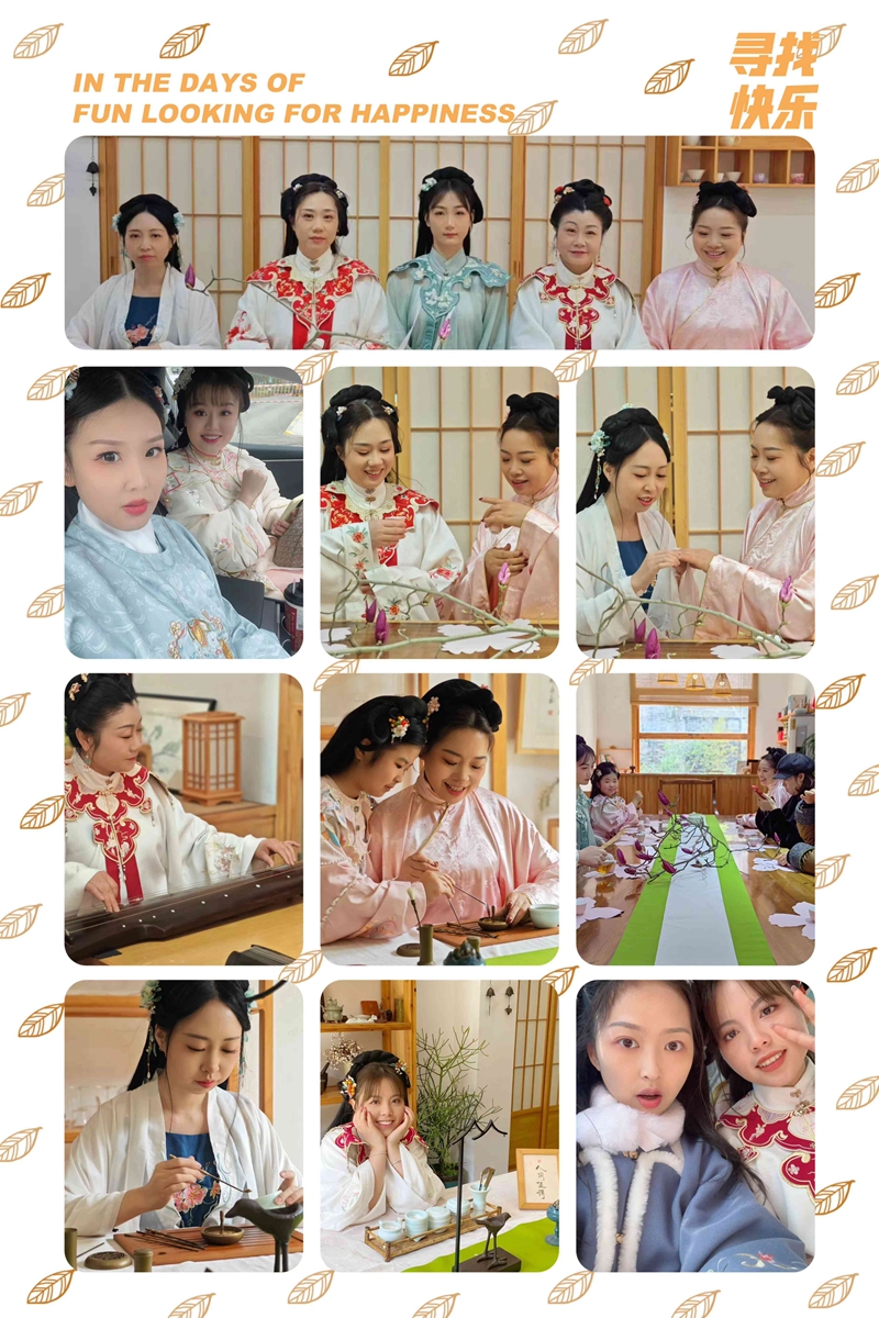 女职工们身着汉服还原古人雅致的生活场景——桃林里,取一把古琴置于台,轻抚之,琴声悠悠;聚二三好友,席地而坐,倒一盏香茗,细品之,茶香、花香,皆入味;明艳女子婷婷袅袅,犹如画中走出来的仙子。