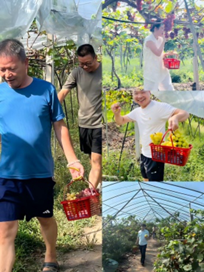 活动当天,大家服从统一指挥前往葡萄园。抵达后,园区专业人员首先为大家讲解了葡萄品种特性与正确采摘方法,随后大家便带着采摘篮分散行动。园内藤蔓上挂满了夏黑、阳光玫瑰等品种的葡萄,颗颗饱满多汁。大家一边挑选成熟的葡萄,一边与同事、家人交流说笑,有的员工还拿起手机记录下采摘瞬间,田园间满是欢声笑语。