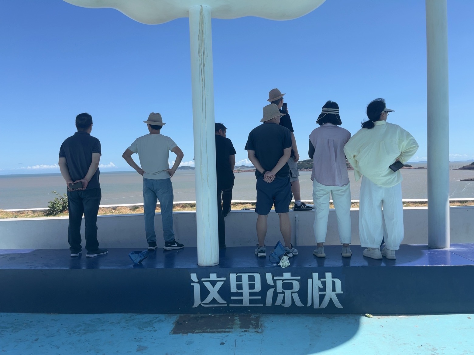 三门 1 号公路。这条被誉为 “浙江最美沿海公路” 的道路,果然名不虚传。公路依海而建,一侧是蔚蓝的大海,海风拂过,带着淡淡的咸湿气息;另一侧是错落有致的村庄与田野,充满了浓郁的乡村风情。我们乘坐的大巴缓缓行驶在公路上,窗外的风景不断变换,时而能看到渔民在海边劳作的身影,时而能望见远处归航的渔船,每一幅画面都充满了生活的烟火气。中途停车休息时,大家纷纷走到海边,踩着柔软的沙滩,感受海浪拍打脚踝的清凉。不少同事还在这里合影留念,让镜头定格下这份与大海相伴的惬意,也定格下同事间并肩同行的美好瞬间。
