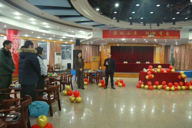 小年至,年意浓。2月11日下午,湖州市邮政工会以小年传统习俗为载体,在多功能厅举办“温暖小年·湖邮有爱” 青年员工联欢活动。湖州市分公司章如权总经理带领党委班子全体成员及相关职能部门出席活动,与近年来新入职大学生员工40余人欢聚一堂。