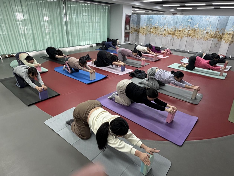 3月13日,瑜伽小组首次开课,职工们暂别忙碌,伴着舒缓音乐静享疗愈时光。在专业老师指导下,大家从冥想呼吸切入,开展肩颈拉伸、基础体式练习,老师逐一对动作细节耐心纠正,众人在一呼一吸间舒展身心,有效缓解伏案工作的身体疲惫和职场压力,实现身心双重放松。