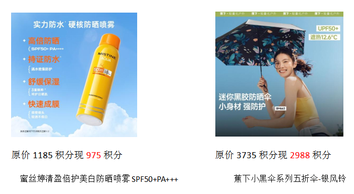在这次活动中,智慧工会惠工商城精选了多款精美商品,涵盖了防晒、护肤品等多个品类。以下是部分活动的商品和兑换所需积分。