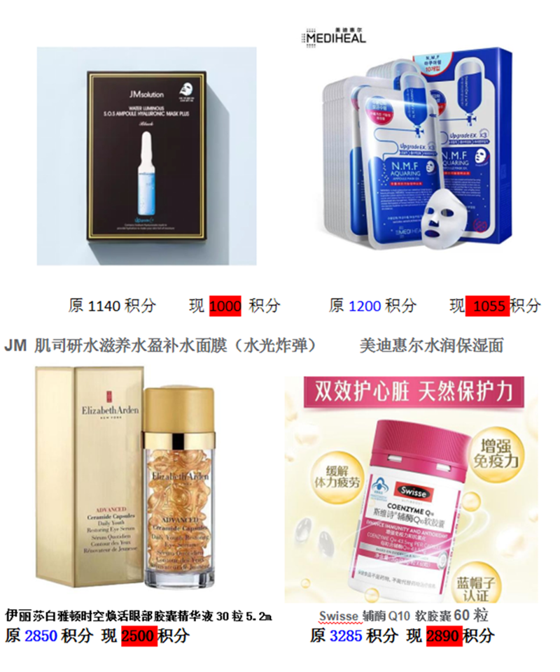 在这次活动中,惠工商城精选多款美妆产品、护肤品、日用品等多个品类,以下是部分活动的商品和兑换所需积分。