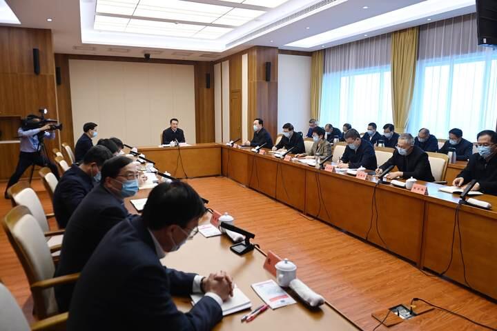 省委副书记、代省长、省新型冠状病毒肺炎疫情防控工作领导小组组长王浩,省领导陈金彪、许罗德、王昌荣、陈奕君、成岳冲、王成国出席。省直有关部门负责人在杭州会场参会。在上虞区分会场,上虞区负责人汇报贯彻落实省新型冠状病毒肺炎疫情防控工作领导小组扩大会议精神的具体举措、当前疫情防控存在问题及困难,绍兴市负责人汇报绍兴市疫情防控工作最新进展。