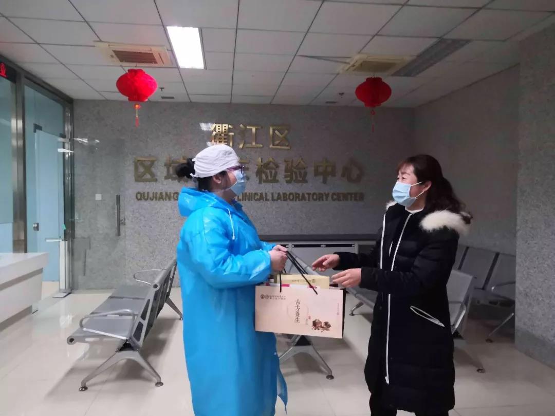 2月17日下午,衢江区总工会副主席杜慧红带队走访慰问了衢江区疾控中心、衢江区人民医院、衢江区中医院等一线医护人员及家属18户,为他们送上了祛瘟散、香囊、口罩等“温馨礼包”,并送上慰问信及服务联系卡。