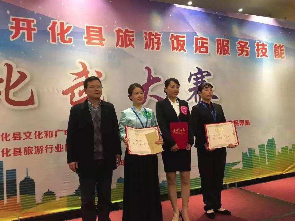 由开化县文化和广电旅游体育局、开化县总工会、开化县人力资源和社会保障局联合主办的开化县旅游饭店服务技能大赛落下帷幕。来自开化东方大酒店、开化国际大酒店、开化滨江圣地大酒店等9支代表队的33名选手参加比赛,共有3名选手被开化县总工会授予 “金牌职工”荣誉。