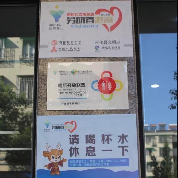 为帮助户外劳动者解决喝水难、热饭难、歇脚难、如厕难等实际困难,营造全社会关心关爱户外劳动者的良好氛围,打响“衢州有礼 根缘开化”城市品牌,开化县总工会、开化县文明办联合人民银行开化支行在金融系统重点提升了10处“劳动者港湾”,目前已全部投入使用。