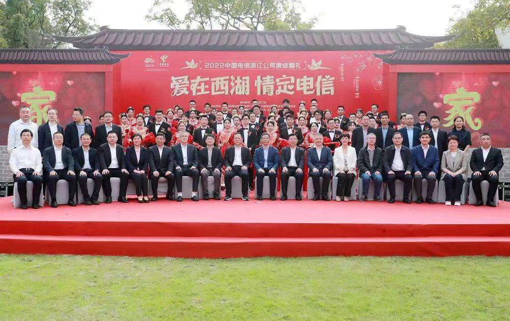 11月11日,“爱在西湖·情定电信”2022中国电信浙江公司集体婚礼在西子湖畔举行,来自全省电信公司的30对新人在美丽的西子湖畔喜结连理,共同迈入幸福家园。