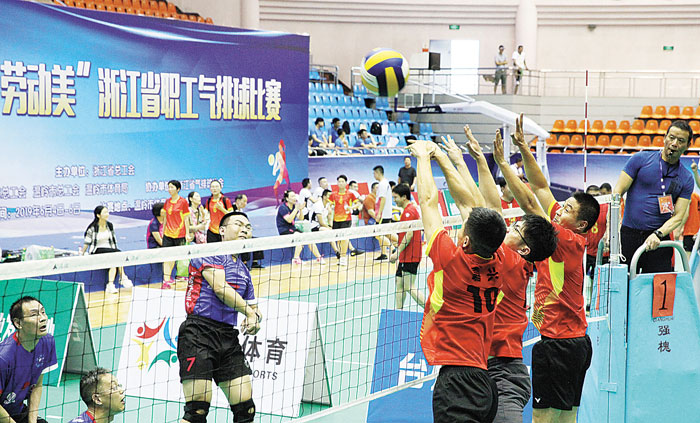 6月4日,由省总工会主办的“中国梦·劳动美”浙江省首届职工气排球比赛在温岭市体育馆举行。来自全省21个市总工会和省产业(局)工会的39支代表队、258名运动员将在温岭进行为期3天的精彩比赛。省总工会副主席张兆都,温岭市委副书记、市委政法委书记沈云才等领导参加开幕式。