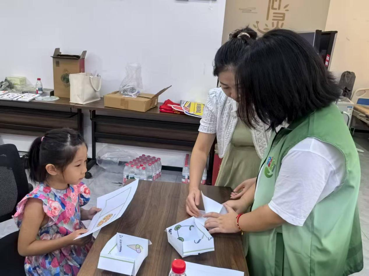 随后进入最受欢迎的创意手工环节。家长和孩子们一起动手,把废旧纸张折叠成桌面垃圾桶,寓教于乐地感受“低碳生活从小事做起”的理念。而在“纸箱大改造”环节中,更是涌现出不少有趣的作品:有的小朋友把薄纸箱做成卡通动物造型,用来装玩具;有的家庭则改造成实用的收纳盒,方便日常生活。整个活动室被孩子们的想象力点亮,现场不时传出阵阵掌声和欢笑声。