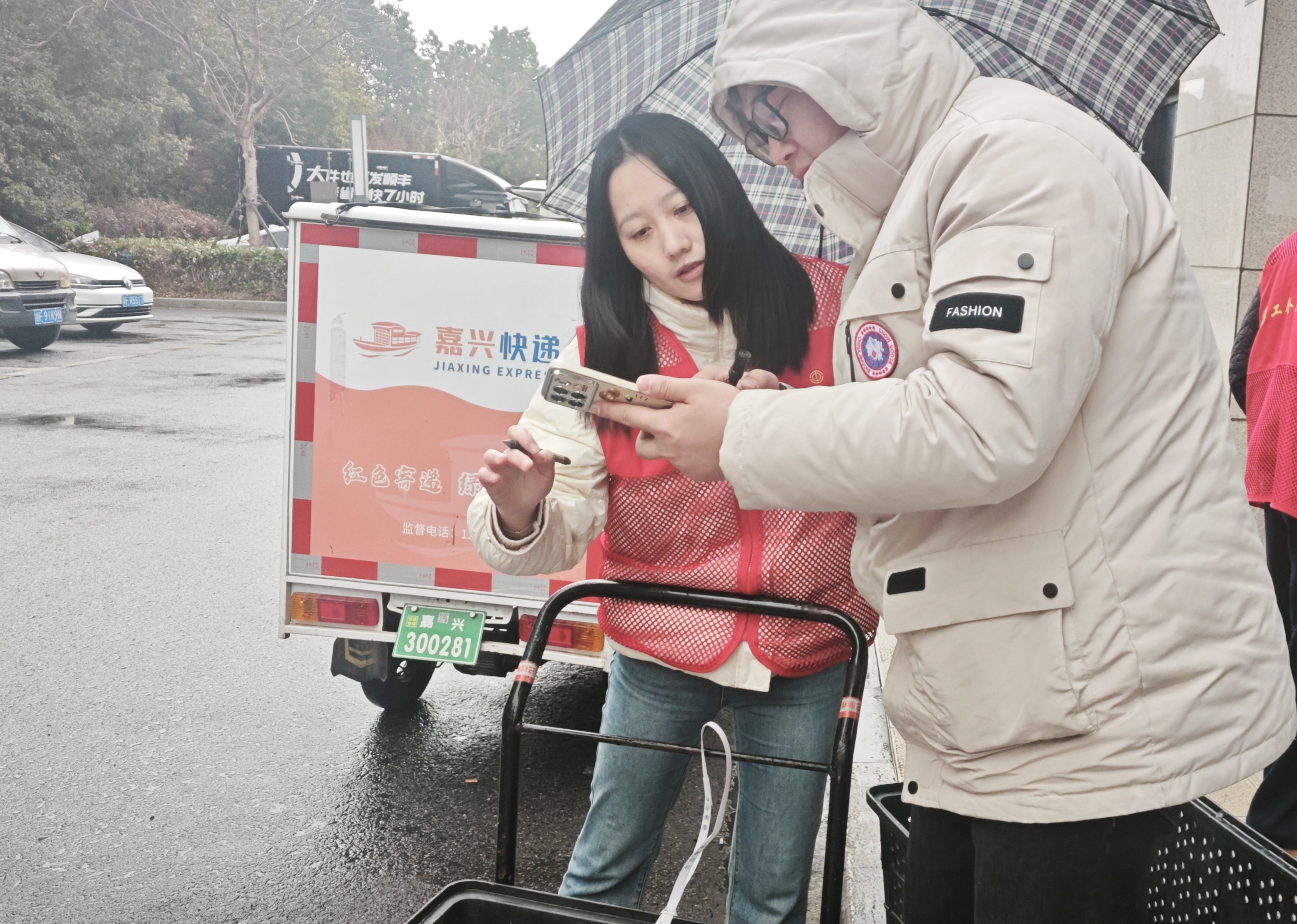 清晨,迎着寒风细雨,海盐县总工会党员干部们准时来到顺丰泊林公馆网点。经过岗前培训与分工,三组人员迅速投入包裹分拣,随后奔赴泊林公馆、祥生悦澜湾、海景苑等小区开始派送。