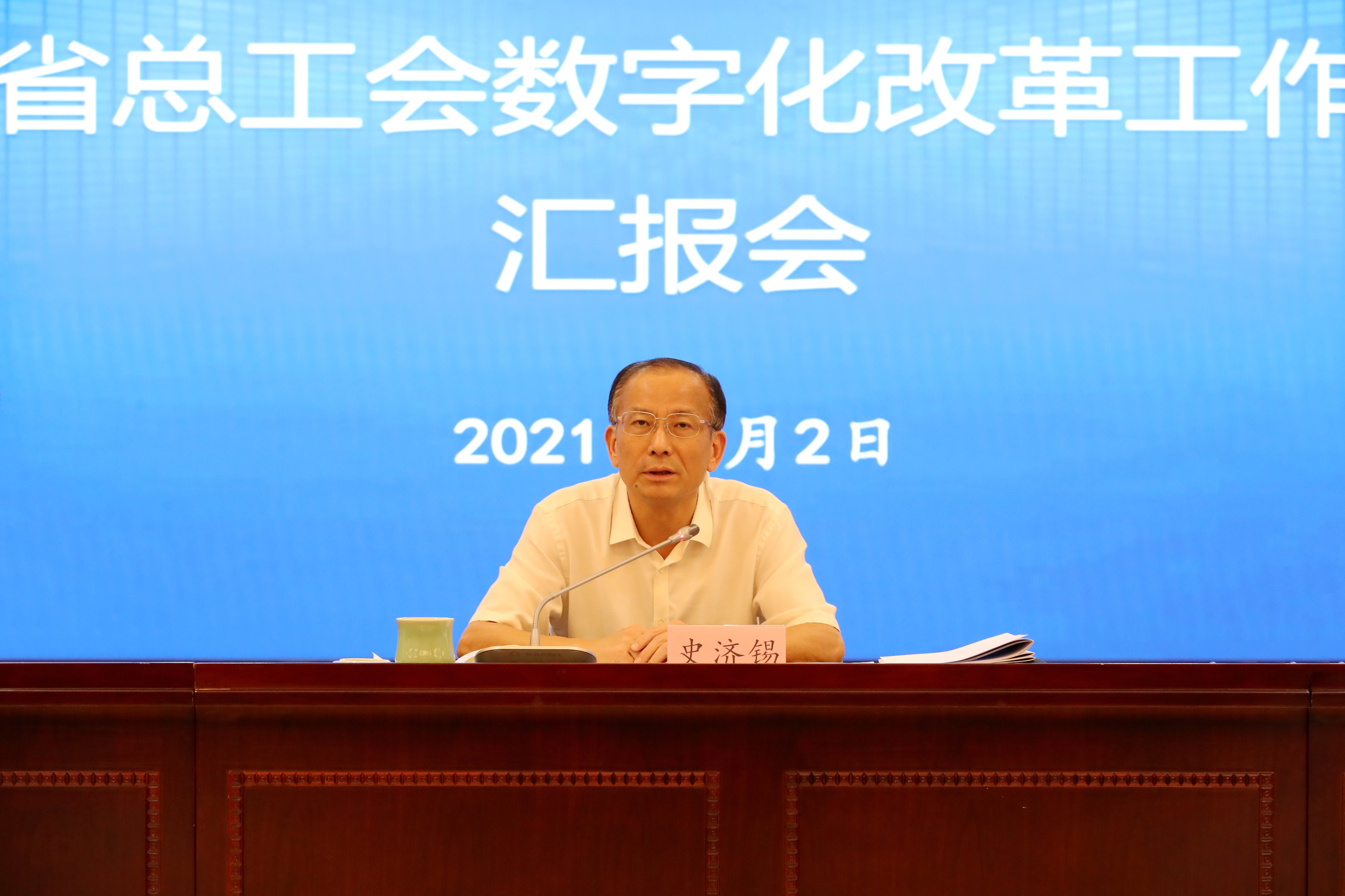 9月2日,省总工会召开数字化改革工作汇报会,进一步研究部署工会数字化改革工作。省人大常委会副主任、省总工会主席史济锡在会上强调,要以学习者、奔跑者、攀登者的姿态投身数字化改革,突出实战实效,体现“管用”“好用”,努力打造更多有工会辨识度的“硬核”成果。省总工会党组书记、副主席张才方主持会议。
